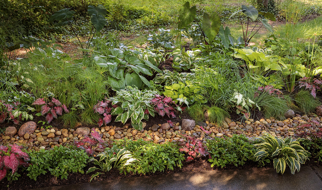 If you struggle to grow turf grass in a spot that stays wet too long after it rains, replace it with plants that will appreciate the extra moisture. Though many ornamental plants need well-drained soil to survive and thrive, those you see pictured below are ones you won’t need to worry about if water pools in the area for a few hours. Some can even grow in standing water.