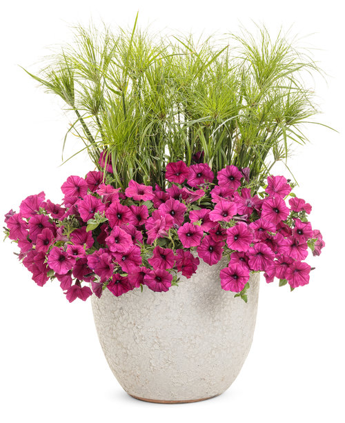 Graceful Grasses® Prince Tut™ brings modern flair and a flash of brilliance as it dances above its companions in container garden design recipes. Since it is quick to mature, it won’t get swallowed up by neighboring plants early in the season. Pair this Egyptian dwarf papyrus with other full sun to part sun loving annuals and be sure to use a large container to accommodate the roots.