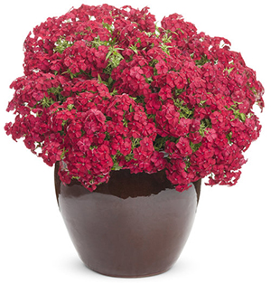 PHLOXINTENSIA® Red Hot Phlox drummondii We’ve found the ideal plant to include in your patriotic flower pots and window boxes. This amazing plant is covered in true red flowers from early spring through fall without having to remove the spent blooms. Its mounding shape and vigorous growth makes it a fast filler for hanging baskets, upright containers and landscapes. This species of Phlox is extremely tolerant of sun, heat, humidity and drought, so it withstands the heat of summer with ease at a time when some other plants might struggle. Grow it like you would a succulent, but expect fantastic flower power, too. Attracts butterflies. 10-16” tall x 10-16” wide. Full sun. |