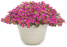 CALIBRACHOASUPERBELLS® RISING STAR™ Calibrachoa This cheerful Superbells is fun to mix with just about any other color in containers, hanging baskets and window boxes on a sunny porch or patio. Each magenta-pink bloom has a creamy white star pattern. They appear on cascading stems from spring to fall without having to remove the spent flowers, so use it as a filler or spiller. Calibrachoa grows best in containers with good drainage, so make sure there's at least one drainage hole in the bottom. Attracts hummingbirds. 6-12” tall x 12-24” wide. Part sun to sun. |