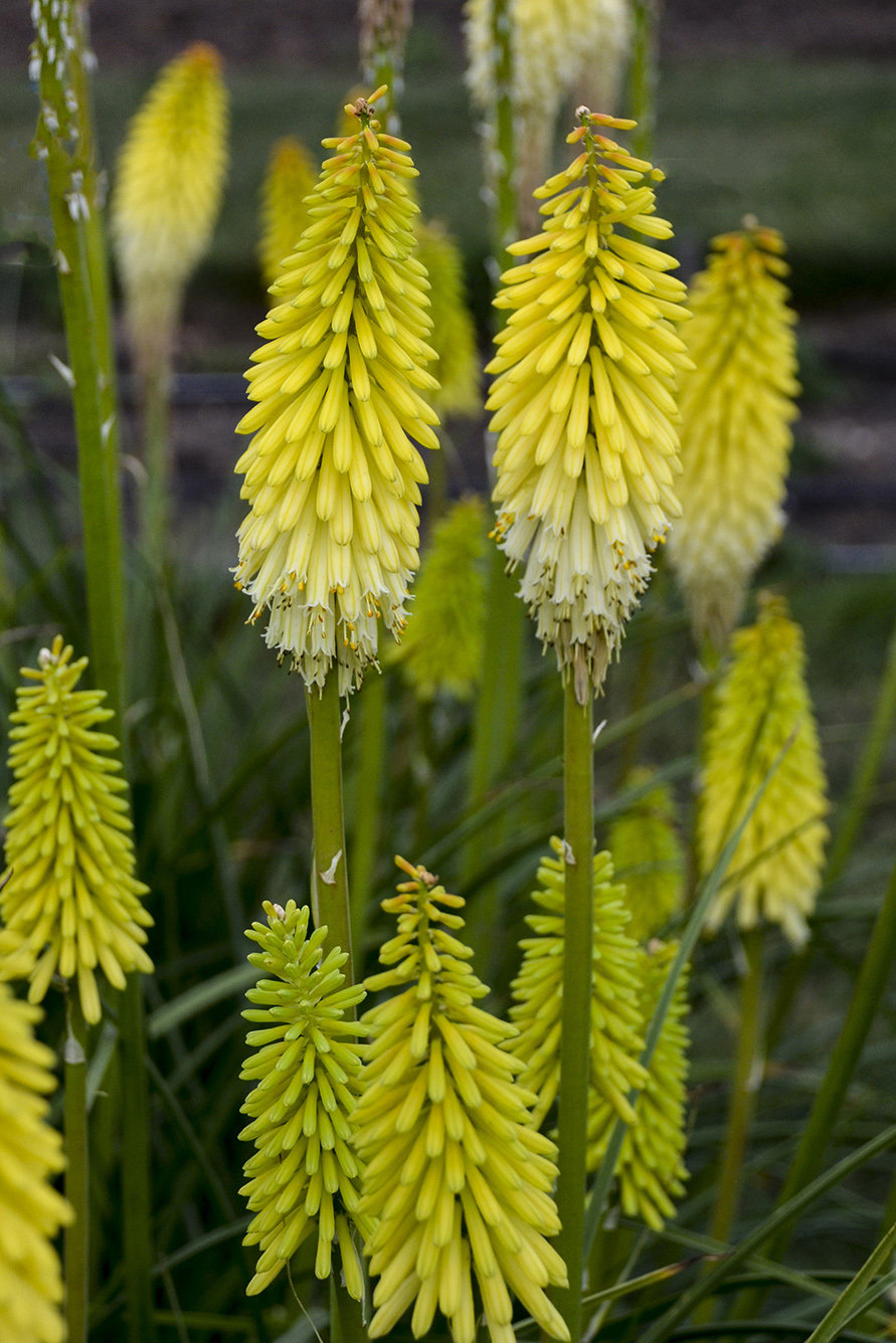 Bring unique drama to your landscape with the spiky flowers and upright habit of this perennial. Chartreuse yellow buds mature to creamy white over grass-like foliage.