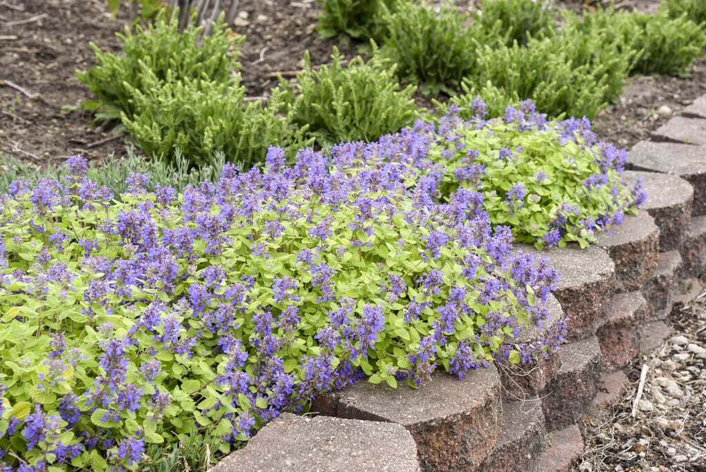 A tidy plant, ‘Lemon Purrfection’ is early to bloom, with lavender blue flowers appearing over golden yellow foliage. With increased shade cover the leaf color will be more chartreuse.